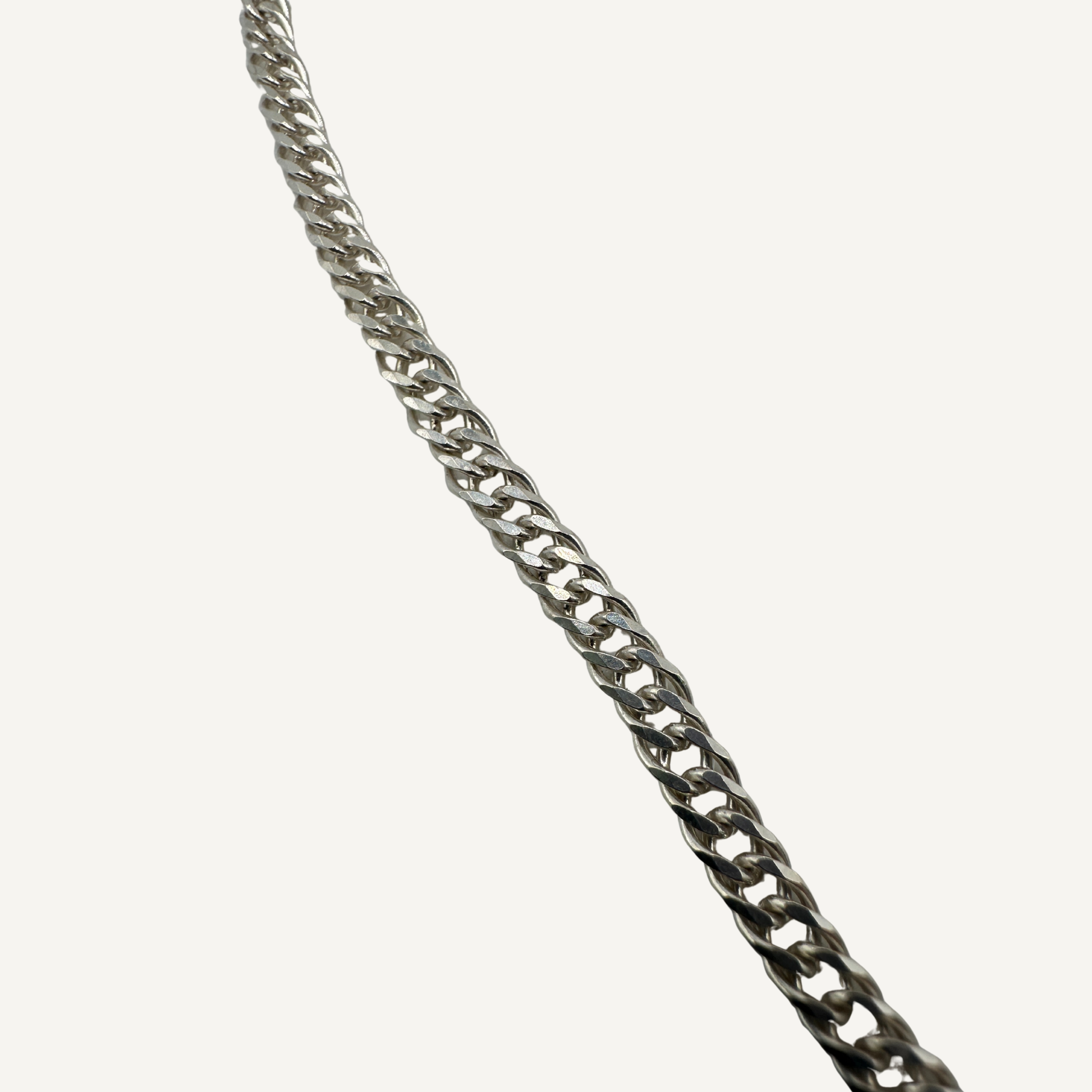 This necklace features a sleek sterling silver curb chain accented with a small row of turquoise beads. The stones add a subtle pop of color while keeping the look minimal and easy to wear. Finished with a simple clasp, it pairs well with everyday outfits and layers nicely with other necklaces.